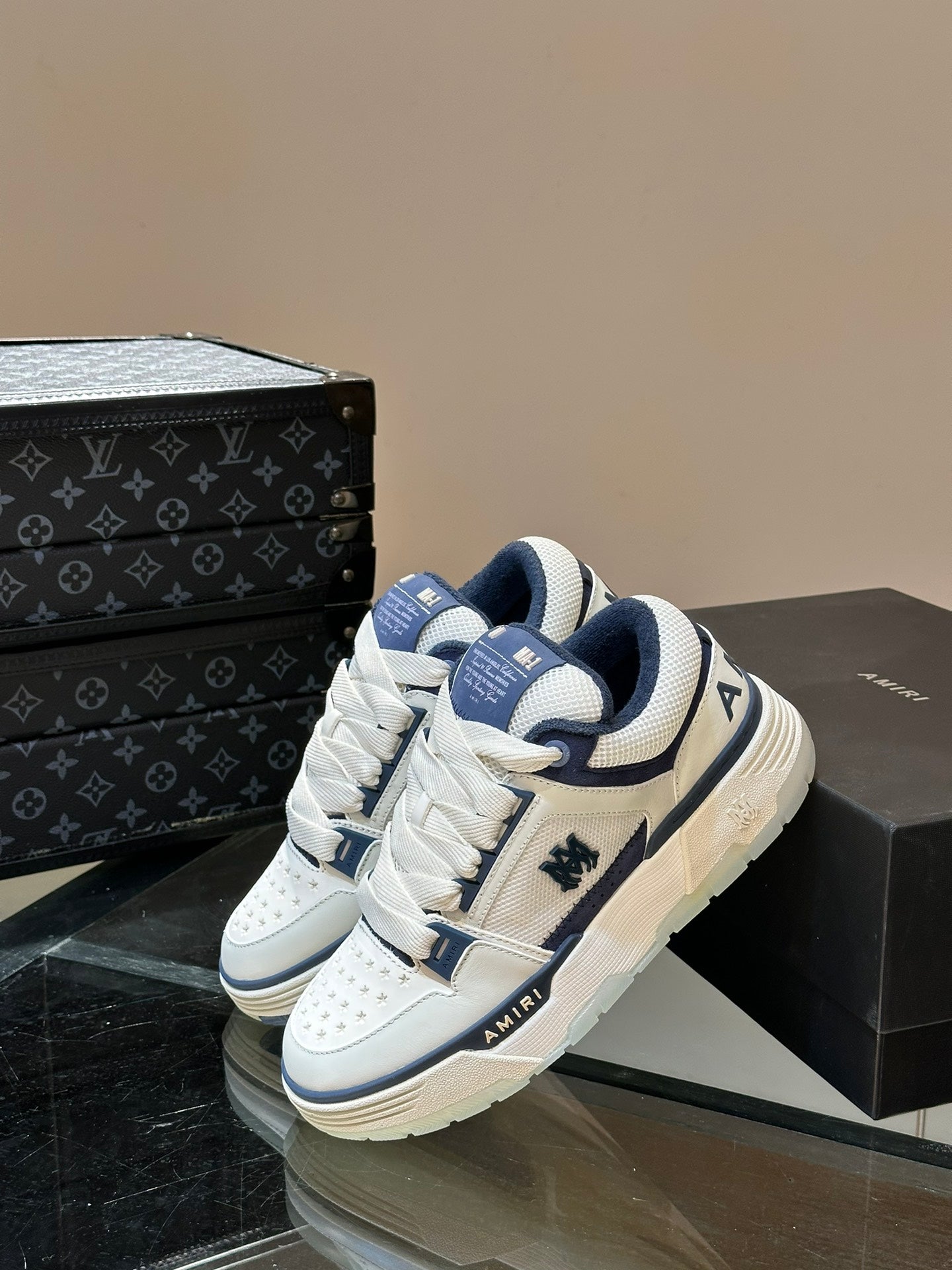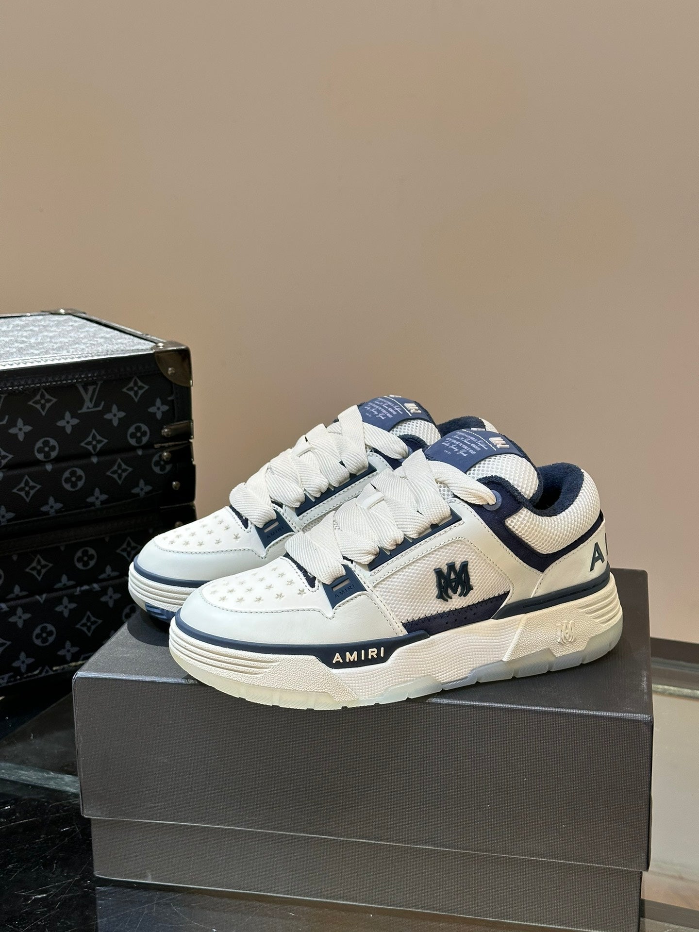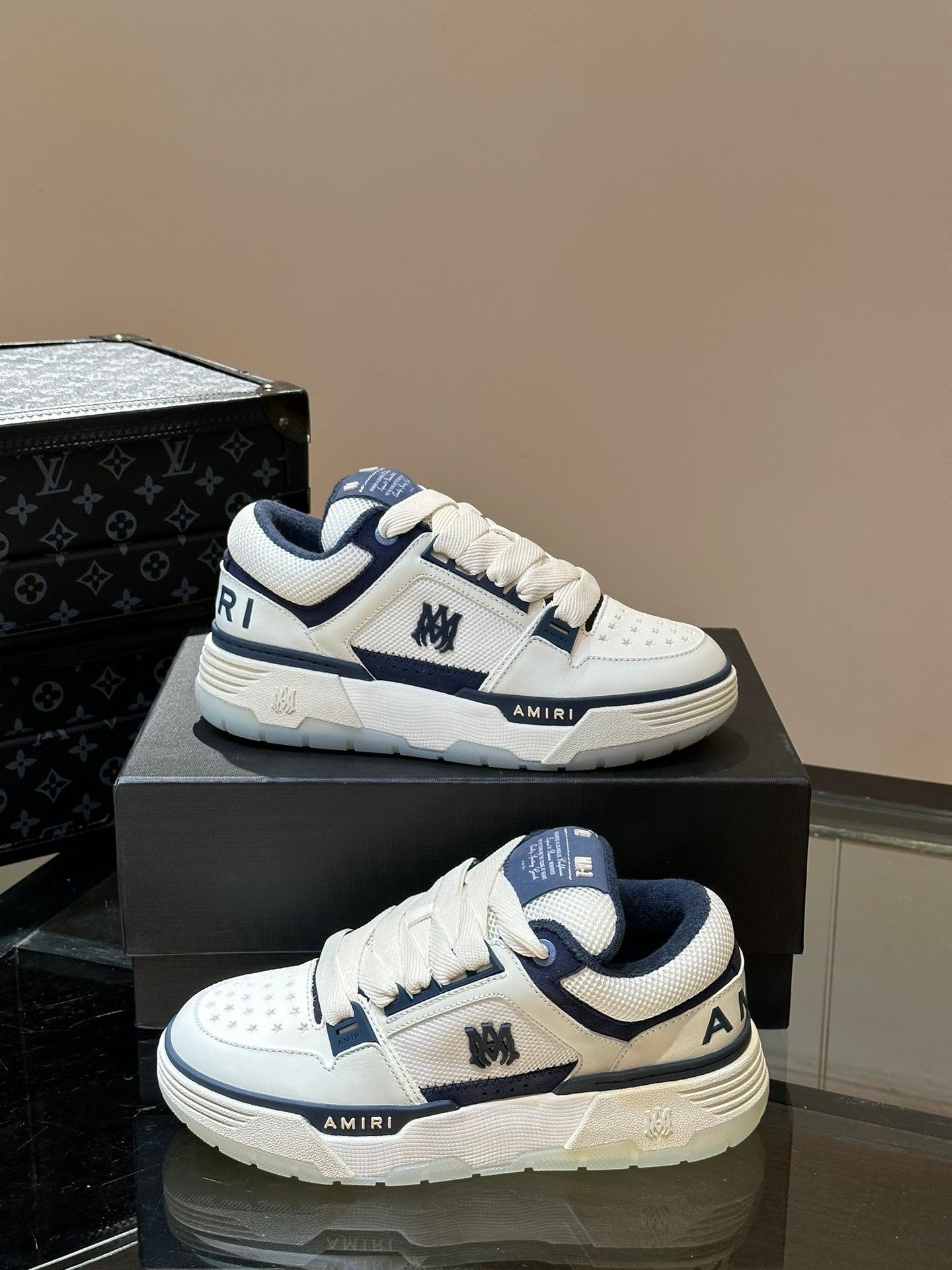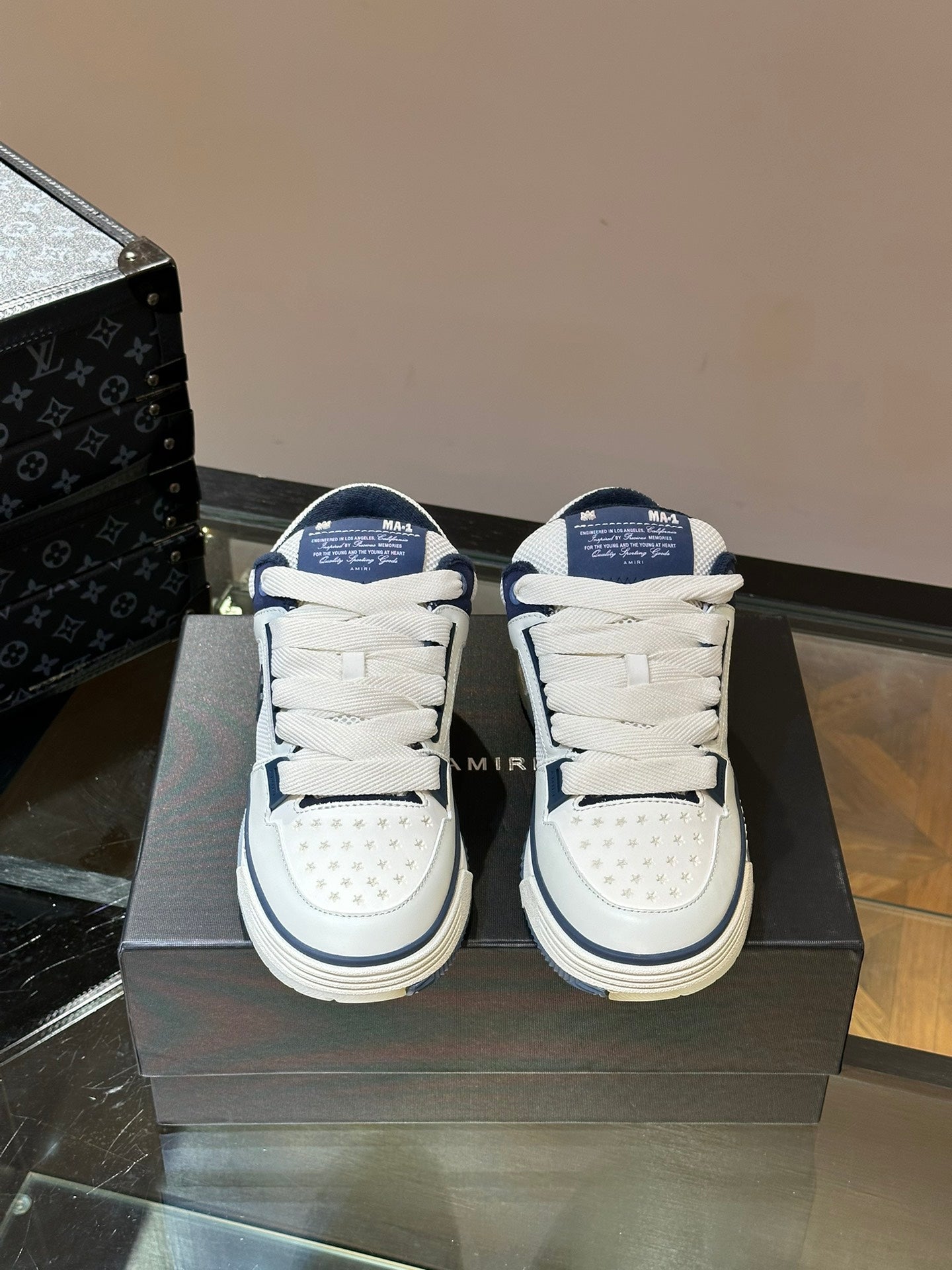 The brand's signature MA Quad monogram is also seen across the collection, reinterpreted on signature sneakers.