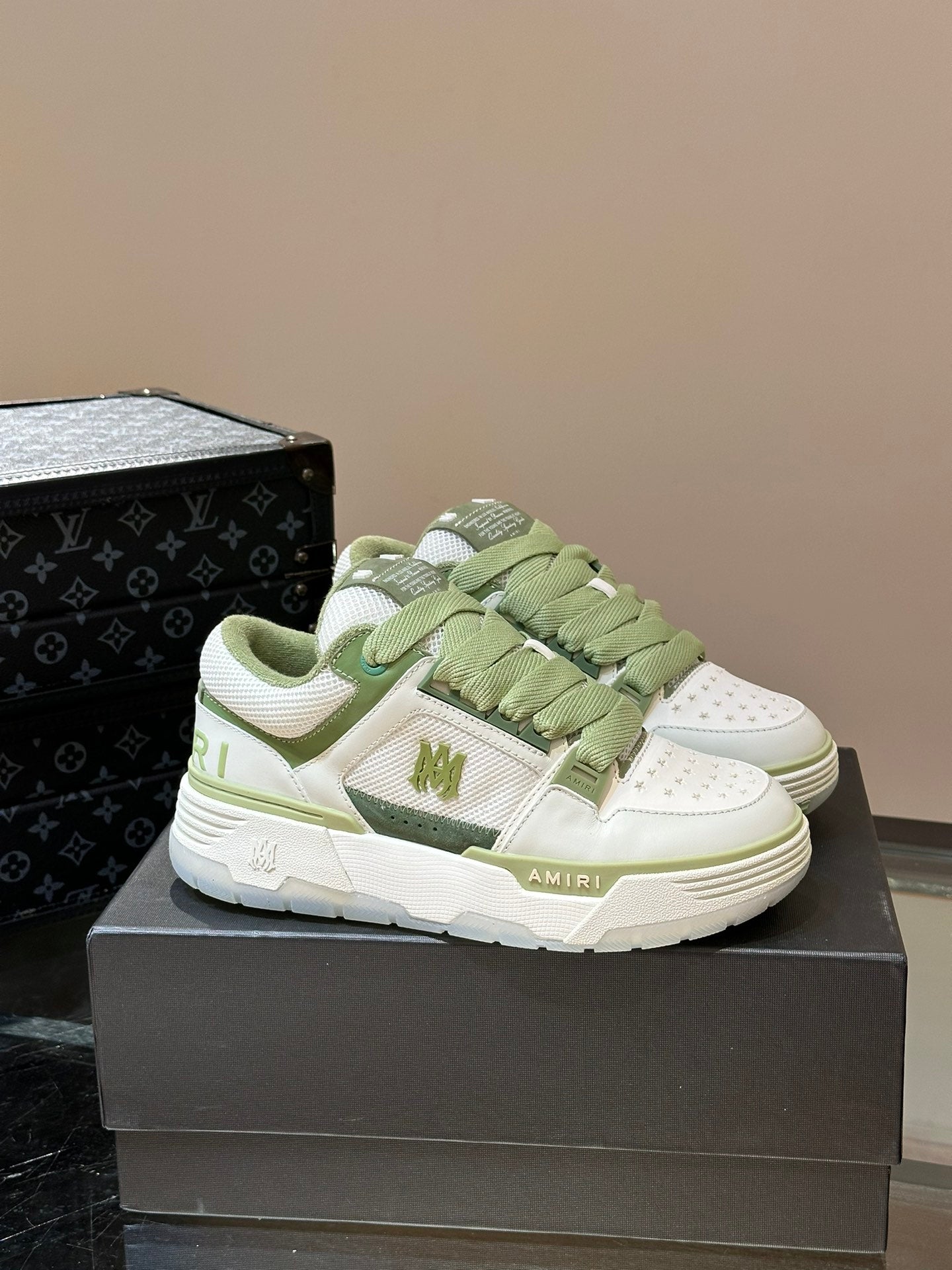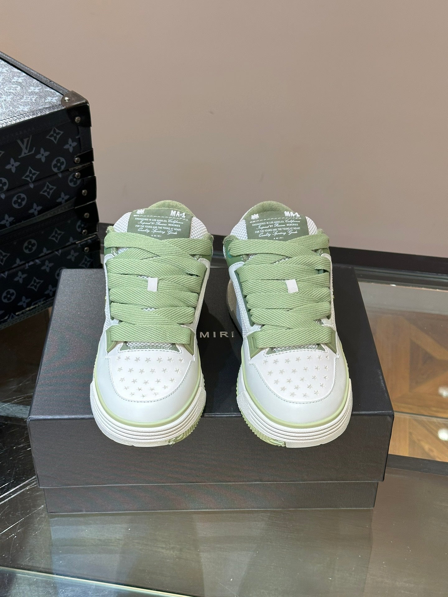 The brand's signature MA Quad monogram is also seen across the collection, reinterpreted on signature sneakers.