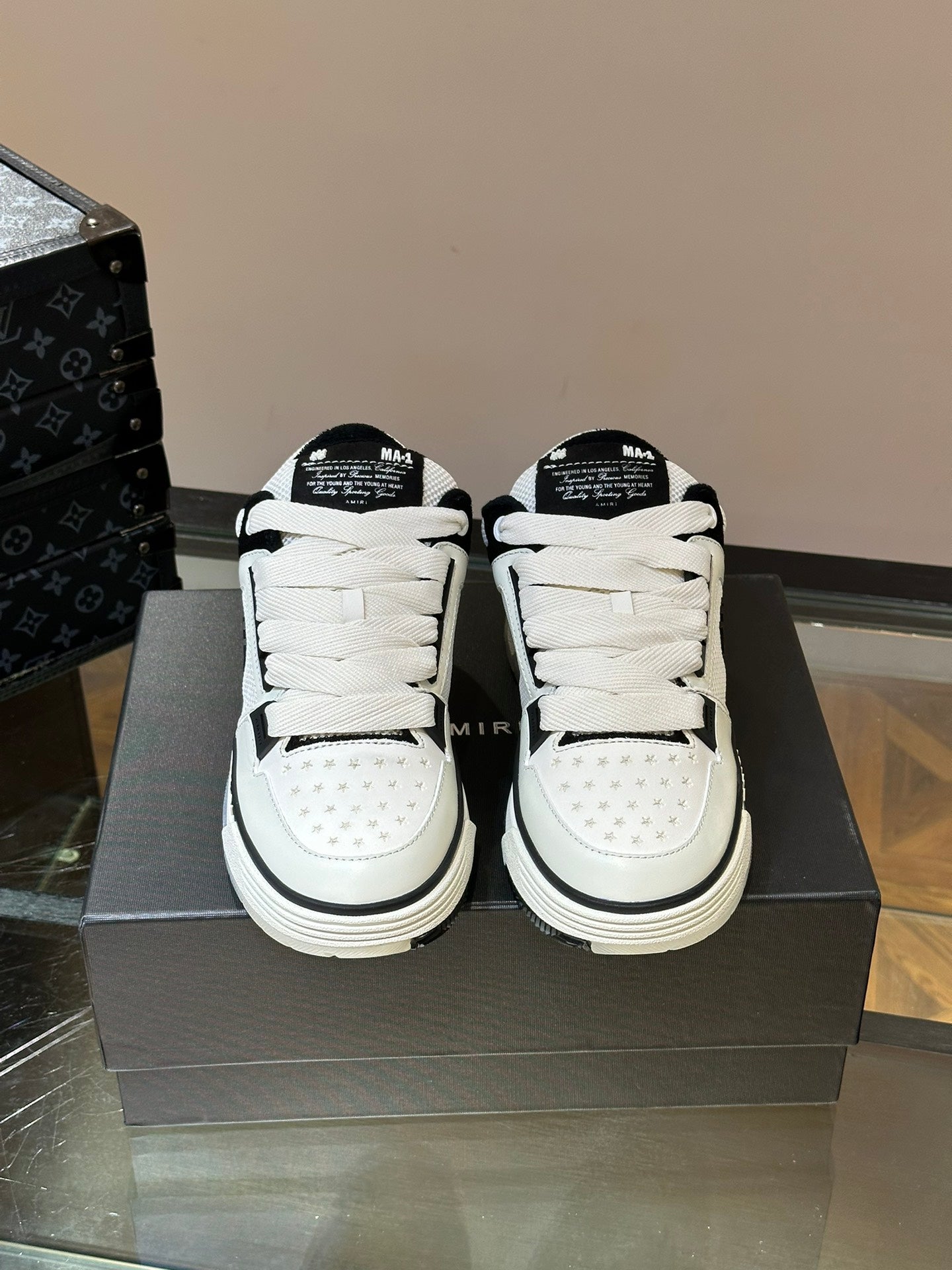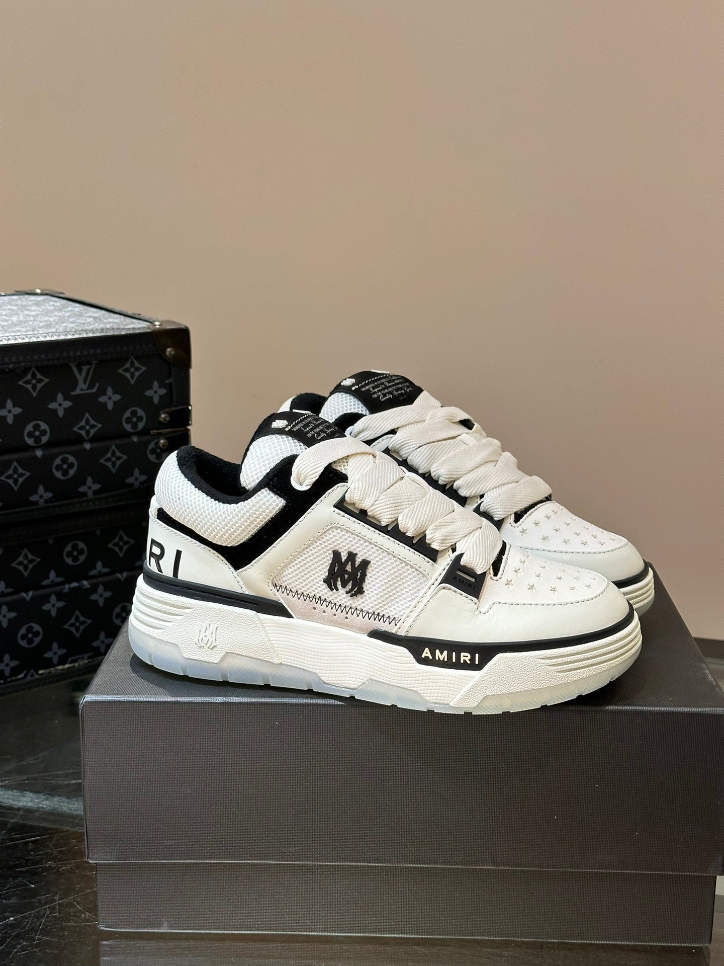 AMIRI's Spring 2024 shoe collection features a variety of sneakers and other footwear styles, including the iconic "Skel Top" sneakers, classic low-tops, and high-heeled silhouettes.&nbsp,