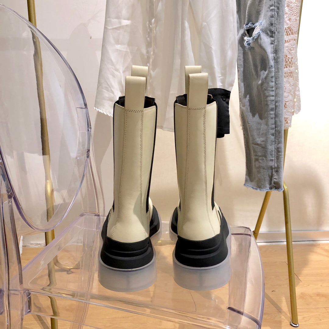 Calf-high buffed vegetable-tanned calfskin Chelsea boots in black.